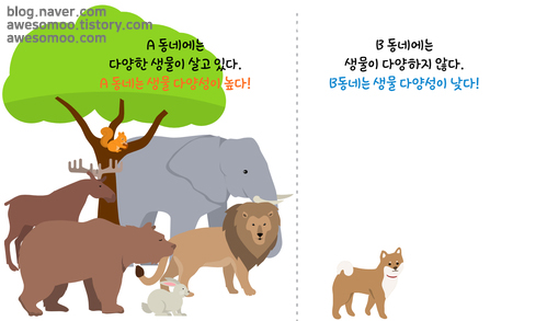 이처럼 특정 지역에 살고 있는 생물이 얼마나 다양한지를 나타내는 정도를