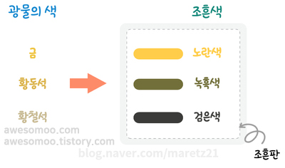 조흔판에 긁어서 만든 광물 가루의 색을 조흔색이라고 합니다.